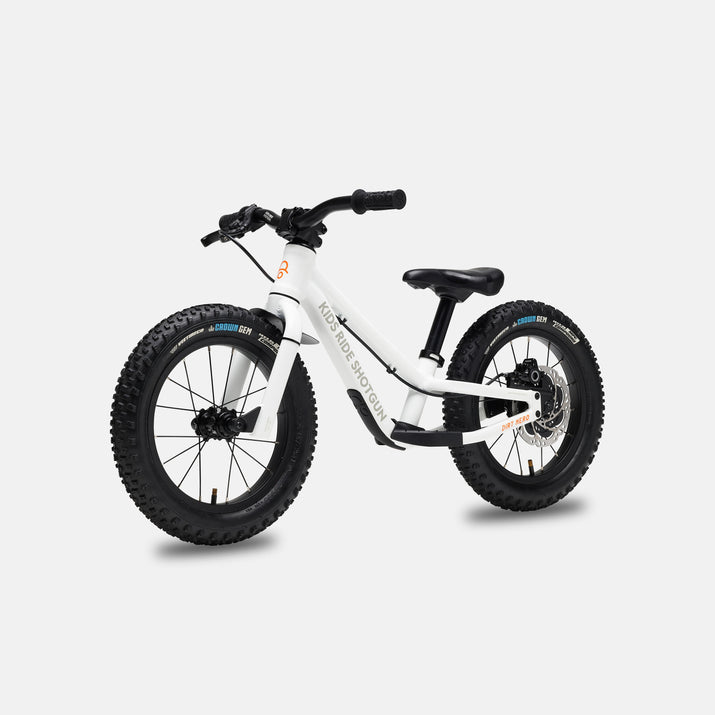 When first progressing to a pedal bike it can be helpful to keep your child’s balance bike available for riding more difficult trails - this keeps the stoke levels high whilst they get to grips with their new pedal bike. If you plan to overlap using both a pedal bike and an off-road balance bike, we recommend waiting until they have mastered braking to introduce the pedal bike.