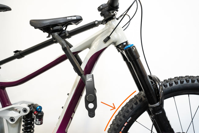 La Shotgun Pro se monte au niveau de la potence et de la tige de selle de ton vélo, le rail de la selle passe en ligne directe entre les deux. Si tu as un vélo dont le tube supérieur est plat, ou s'élève sur une partie, il peut interférer avec la trajectoire du rail.