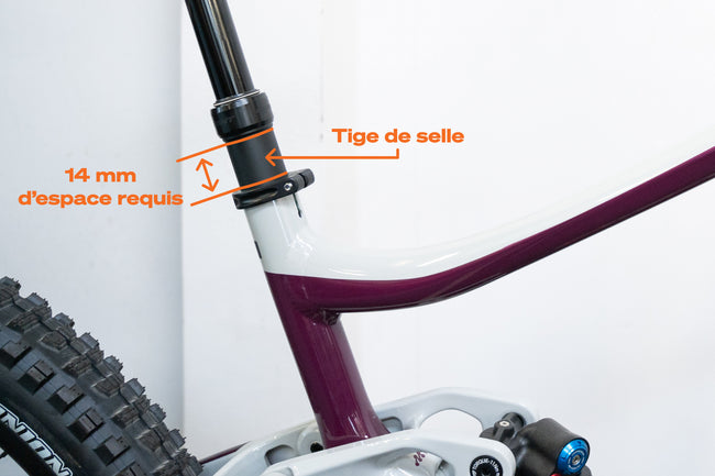 - 14 mm de dégagement sur la tige de selle