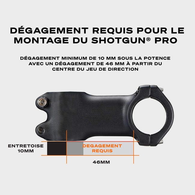 L'entretoise Shotgun Pro mesure 10 mm de haut, tu dois donc disposer de 10 mm d'espace sous ta potence pour installer l'entretoise.