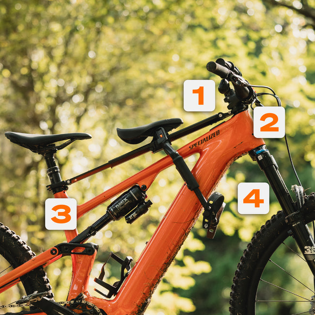 Se fixe sur ton jeu de direction et ta tige de selle, sans aucun contact avec ton cadre.