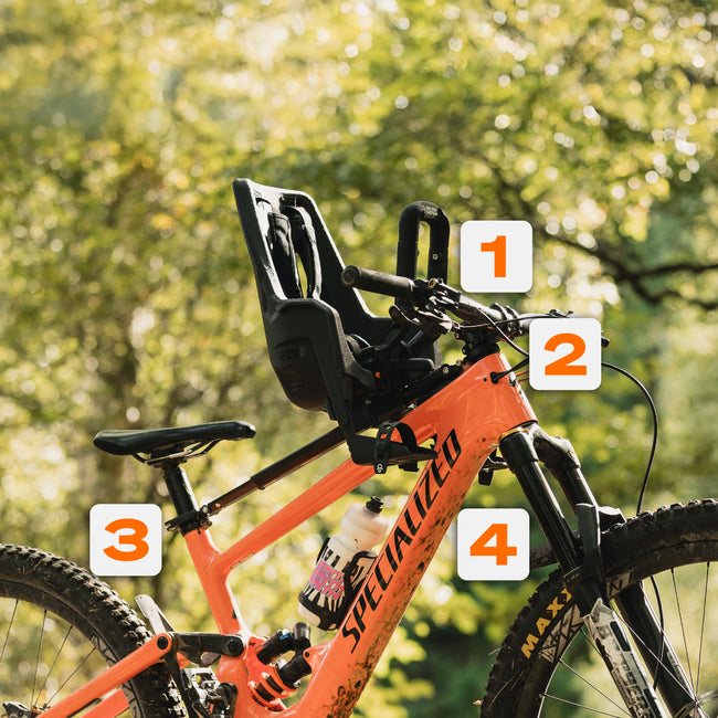 Ajuste précisément la position et l’angle de la selle pour l’adapter à ton vélo. Tu bénéficieras de plus d’espace au poste de pilotage, d’un meilleur angle de braquage, d’une position idéale pour ton enfant, et d’aucune pièce qui vient taper dans ta fourche ou ton cadre.